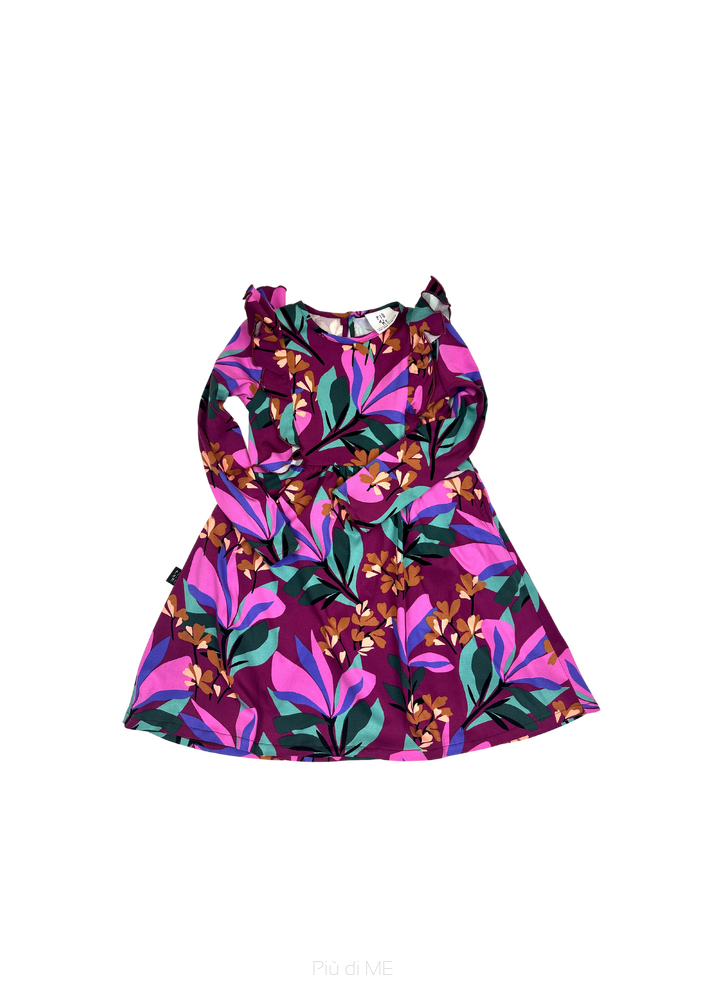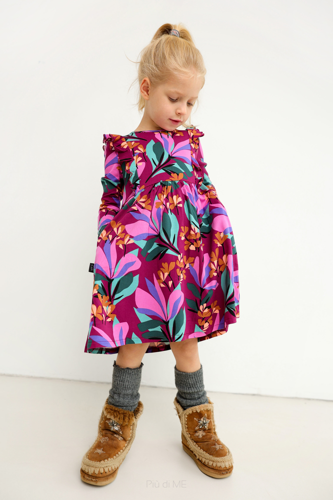 Piękna sukienka z falbankami w soczystych barwach i kolorowym princie.