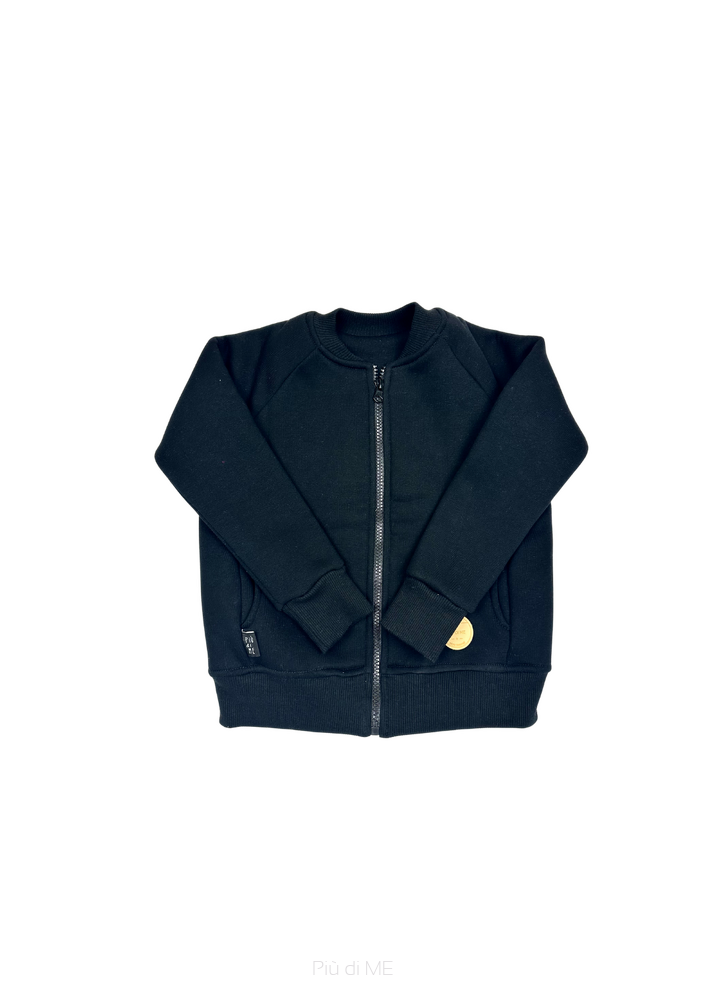 Bluza ZIP na zamek typu bomber w kolorze czarnym z nadrukiem z tyłu na plecach HI. Wykończona ściągaczami. Jest to super ciepła bluza na chłodne dni i wieczory z puszkiem od spodu.