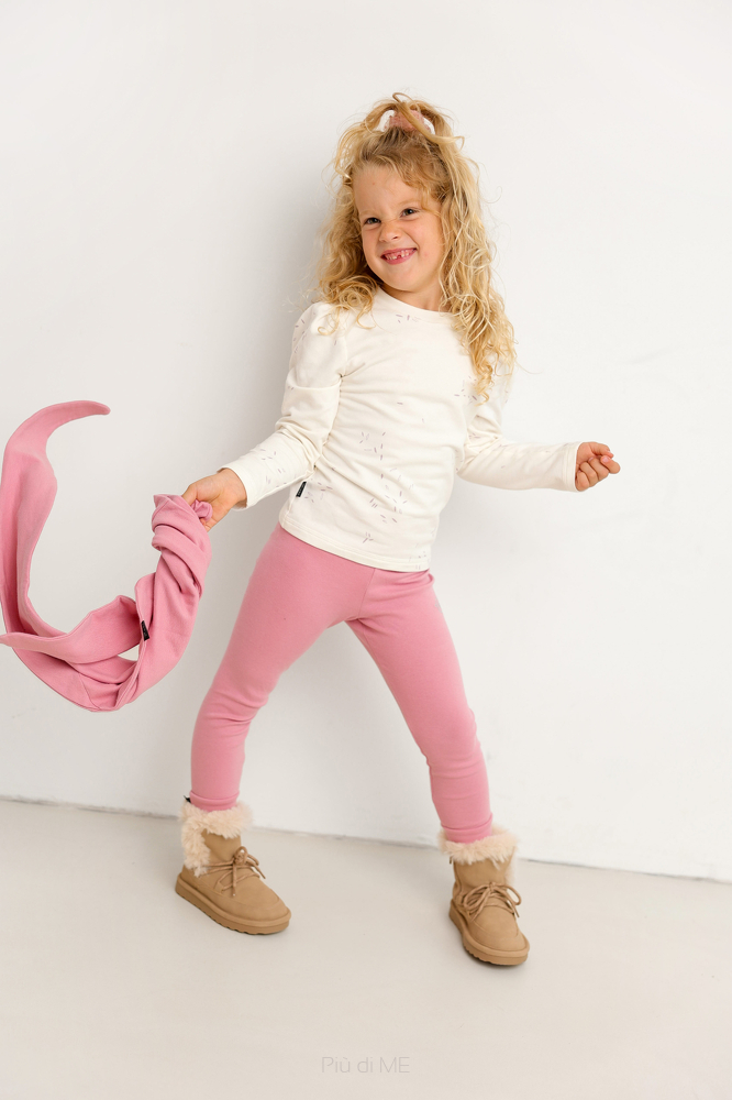 Wygodne, elastyczne legginsy z drobnego, prążkowanego ściągacza. W pasie gumka, po boku mały haft "Hi". Kolor różowy. Skład: 100% bawełna.