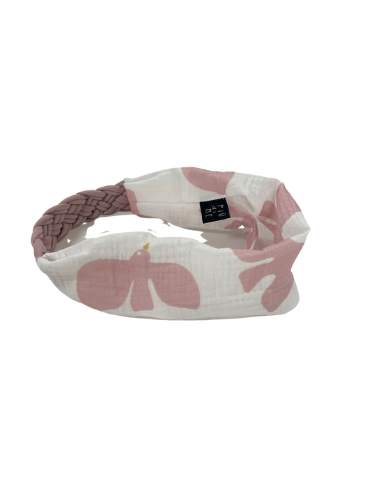 0109-24 HEADBAND MUSLIN/ BIRDS PRINT / VIOLET - GOTS