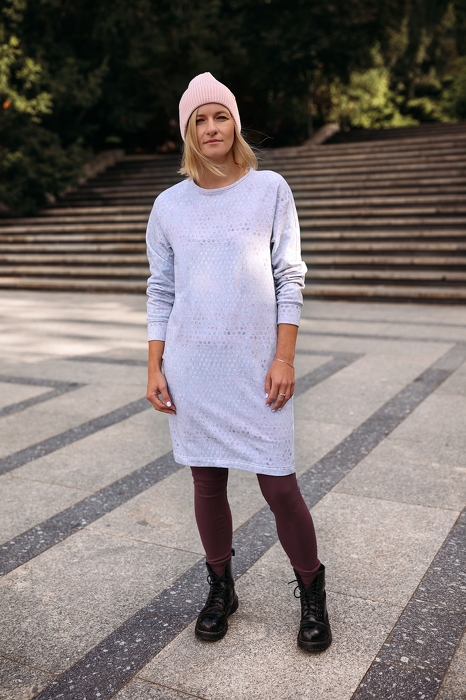 69-21 WOMEN ENVELOP DRESS / SUKIENKA - gray stars