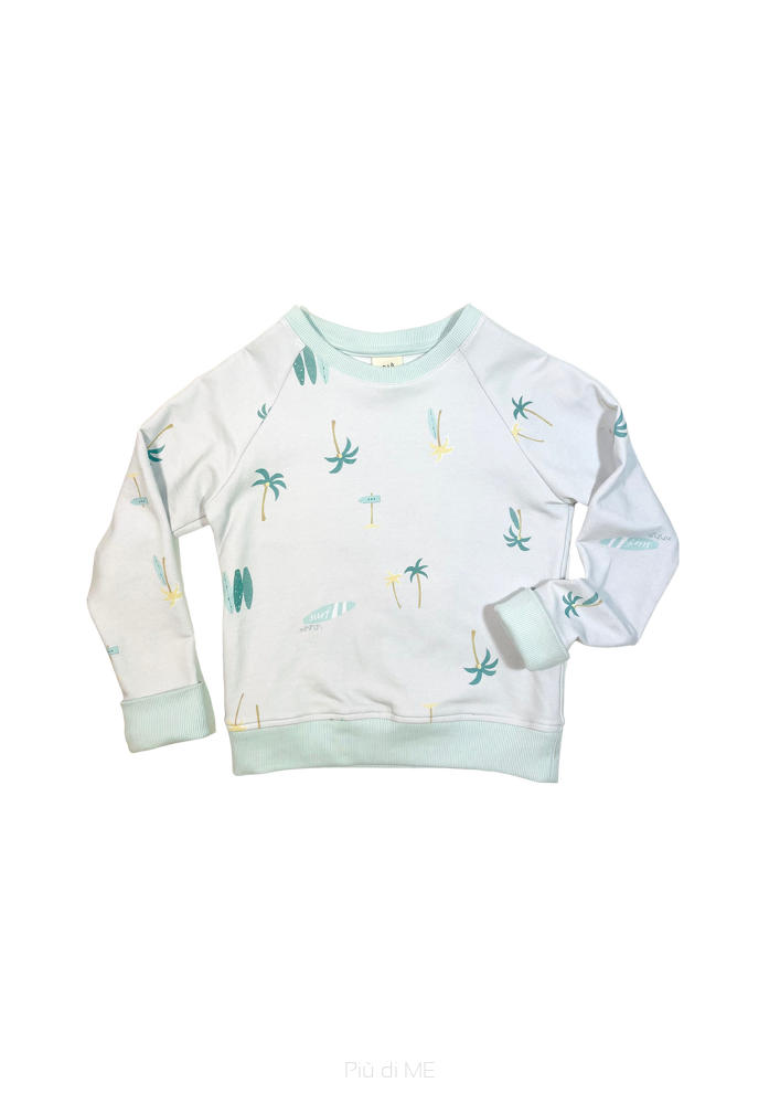 | Bluza z wzorem SURF wykończona błękitnym ściągaczem.92% bawełna / 8 % elastan |