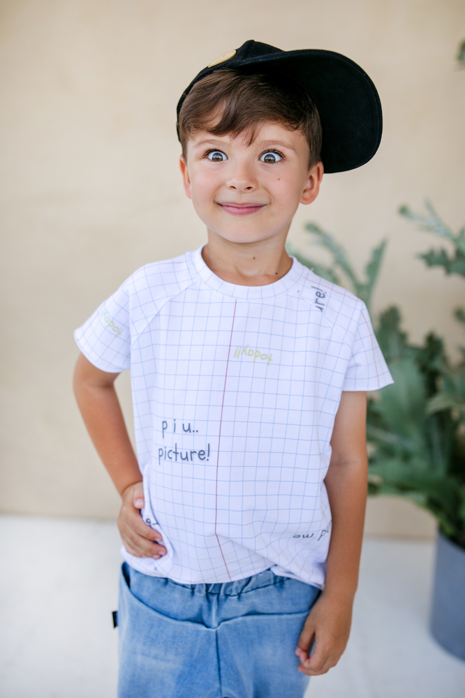Top z dzianiny dresowej z nadrukiem kartki papieru.