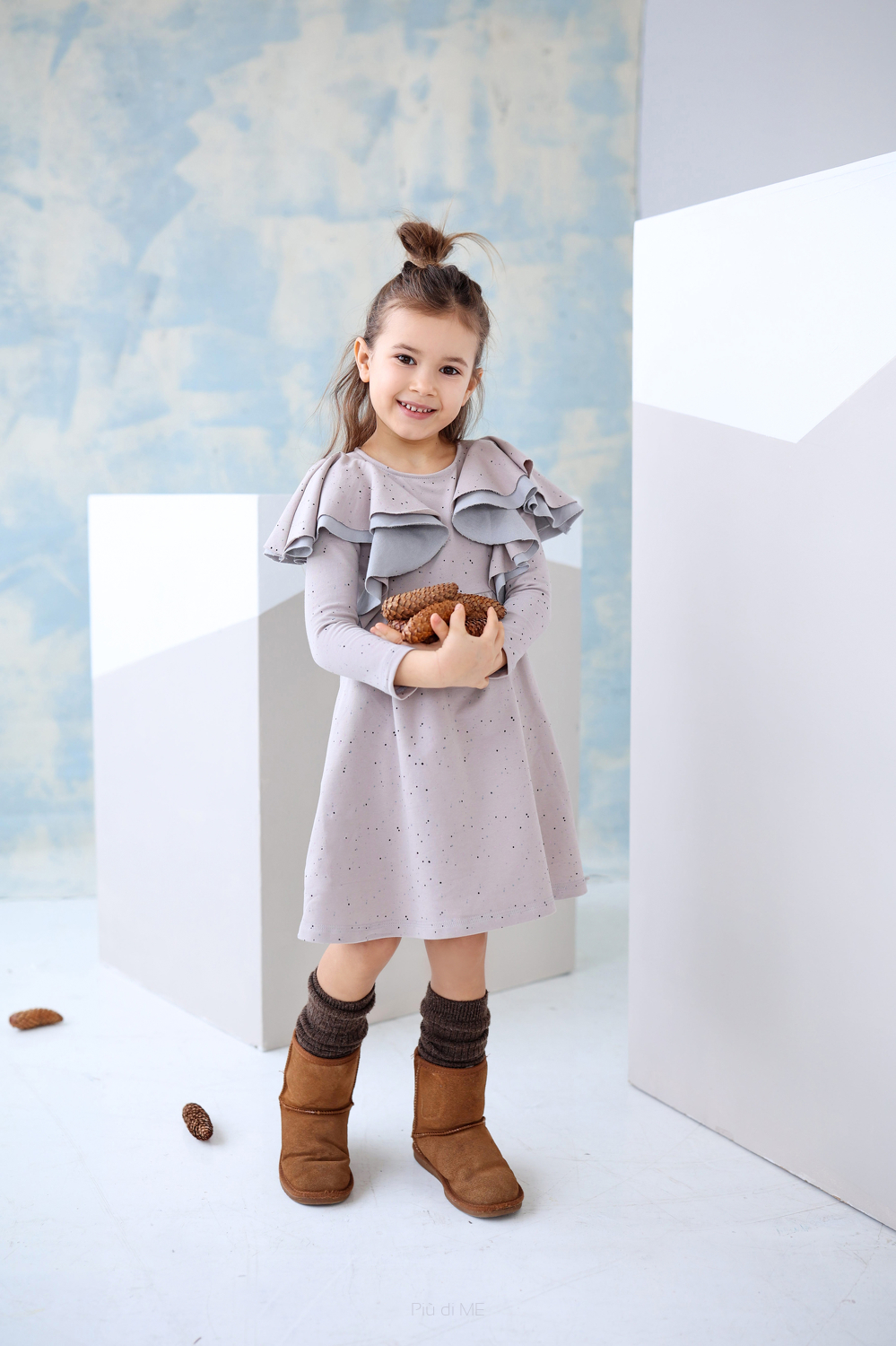 Na ramionach mieszczą się ozdobne falbany , środkowa jest w kolorze szarym.