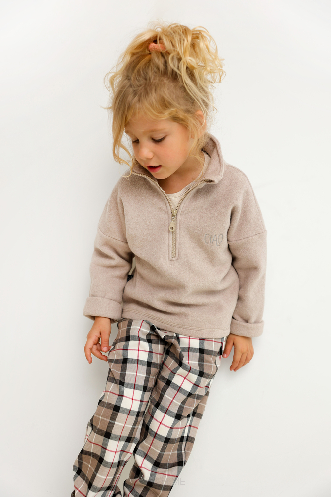 Spodnie bawełniane o luźnym fasonie w kratkę w kolorach ziemi.