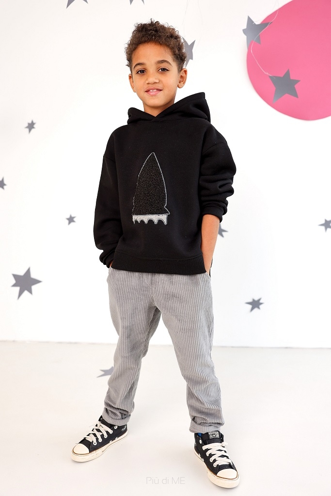 | Ciepła , gruba bluza o szerszym fasonie z aplikacją na przodzie.Posiada duży kaptur. |
